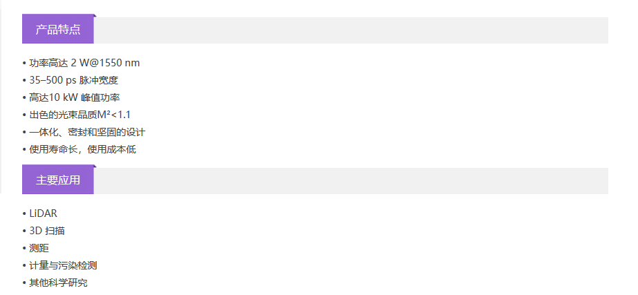 etsc东隆科技 1550 nm皮秒脉冲激光器EPFL-1550-1