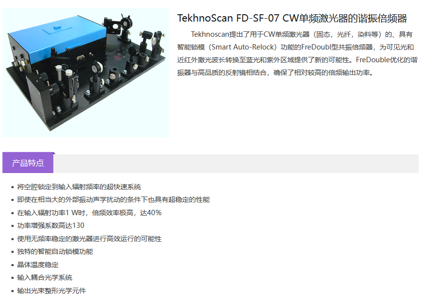 etsc东隆科技 TekhnoScan FD-SF-07 CW单频激光器的谐振倍频器