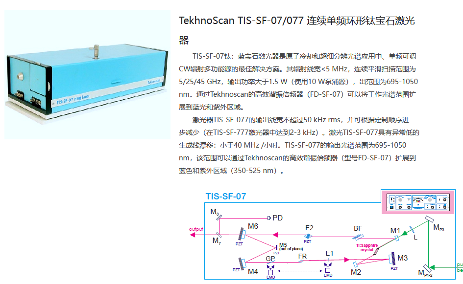 etsc东隆科技 TekhnoScan TIS-SF-07077 连续单频环形钛宝石激光器 电话:0755-84670052 0755-83317701 手机/微信:13682357549 13246646513 QQ:672776553 564600083 1903656788 Email:672776553@qq.com 564600083@qq.com