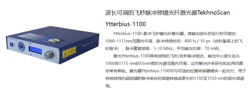 etsc东隆科技 波长可调的飞秒脉冲掺镱光纤激光器TekhnoScan Ytterbius-1100