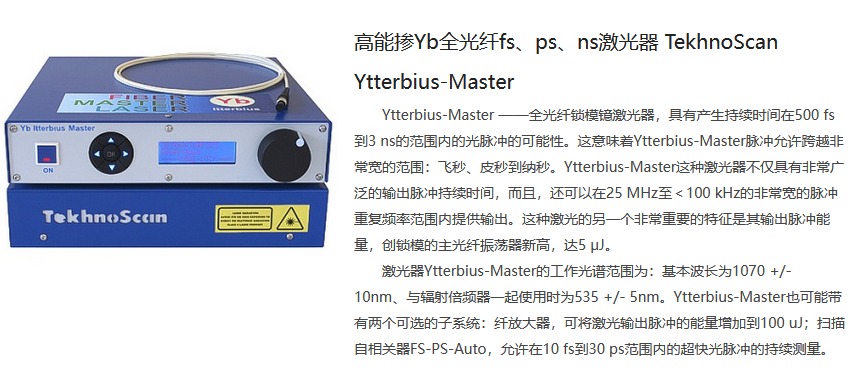 etsc东隆科技 高能掺Yb全光纤fs、ps、ns激光器 TekhnoScan Ytterbius-Master