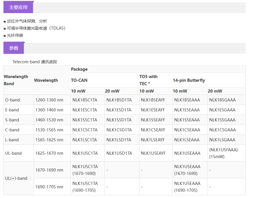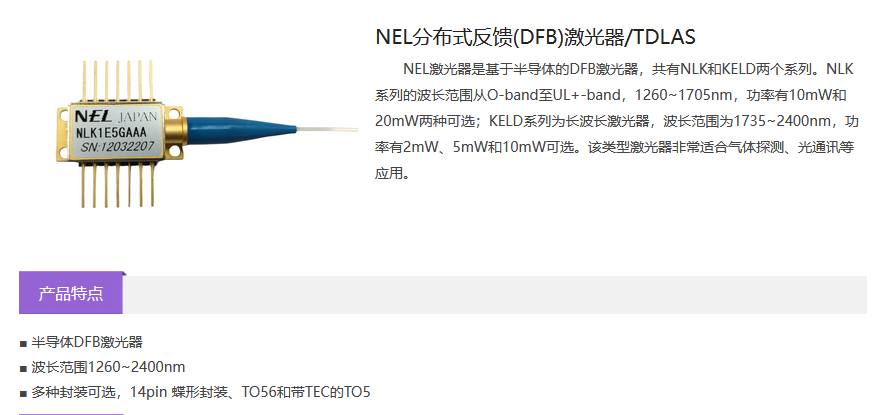 etsc东隆科技 NEL分布式反馈(DFB)激光器TDLAS