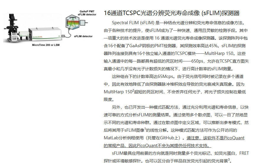 16通道TCSPC光谱分辨荧光寿命成像 (sFLIM)探测器