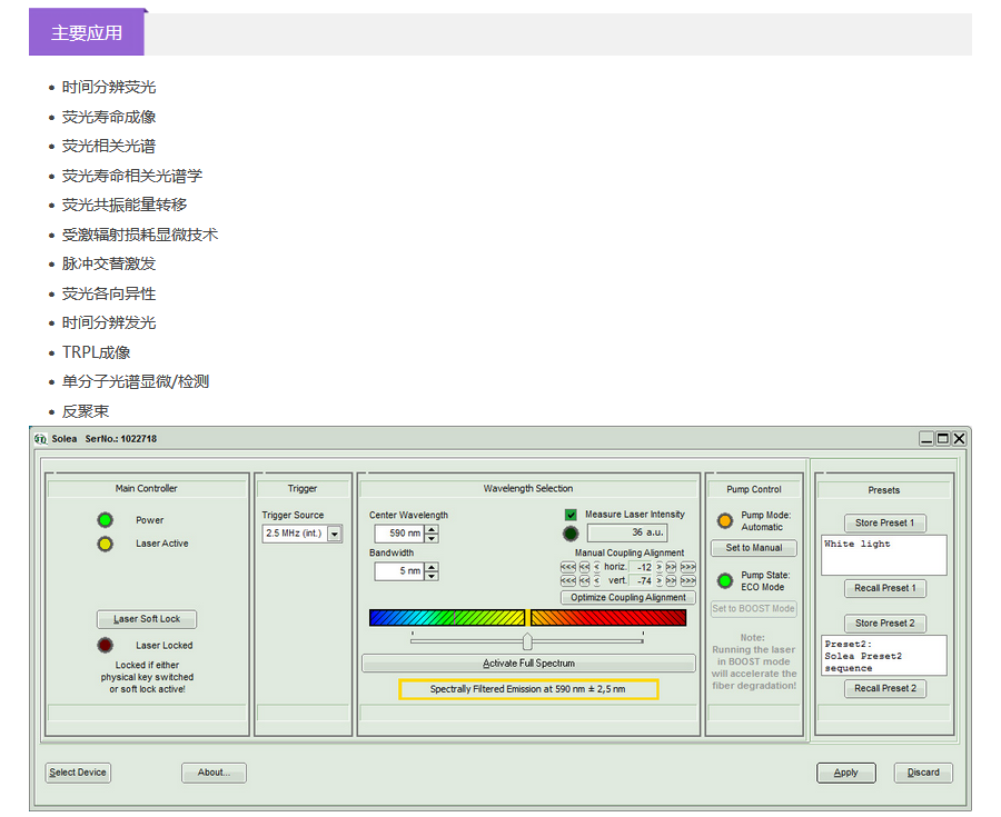 etsc东隆科技 PicoQuant 超连续谱光源Solea 电话:0755-84670052 0755-83317701 手机/微信:13682357549 13246646513 QQ:672776553 564600083 1903656788 Email:672776553@qq.com 564600083@qq.com
