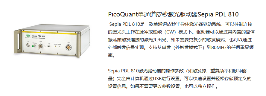 etsc东隆科技 PicoQuant单通道皮秒激光驱动器Sepia PDL 810 电话:0755-84670052 0755-83317701 手机/微信:13682357549 13246646513 QQ:672776553 564600083 1903656788 Email:672776553@qq.com 564600083@qq.com
