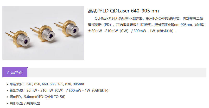 etsc东隆科技 高功率LD QDLaser 640-905 nm