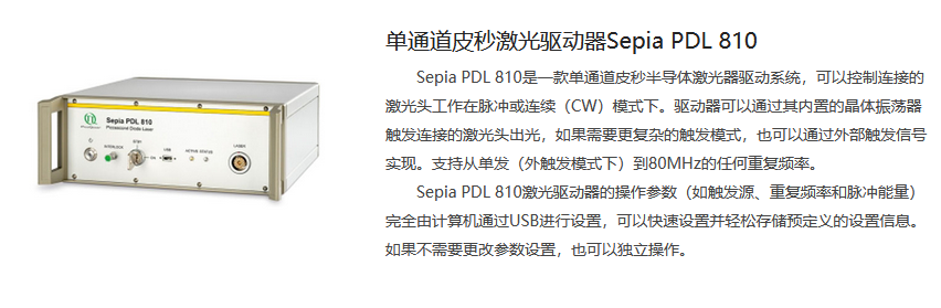 etsc东隆科技 单通道皮秒激光驱动器Sepia PDL 810 电话:0755-84670052 0755-83317701 手机/微信:13682357549 13246646513 QQ:672776553 564600083 1903656788 Email:672776553@qq.com 564600083@qq.com