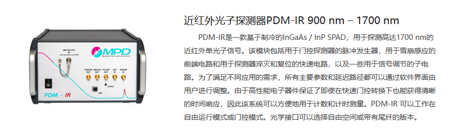 etsc东隆科技 近红外光子探测器PDM-IR 900 nm – 1700 nm