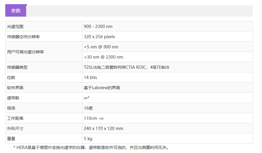 etsc东隆科技 超高灵敏度高光谱相机HERA Extended SWIR