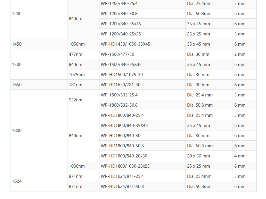 etsc东隆科技 体积相位全息光栅VPH WP-HD1800-840-30