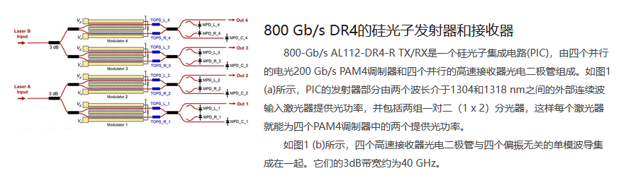 etsc东隆科技\800 Gbs DR4的硅光子发射器和接收器