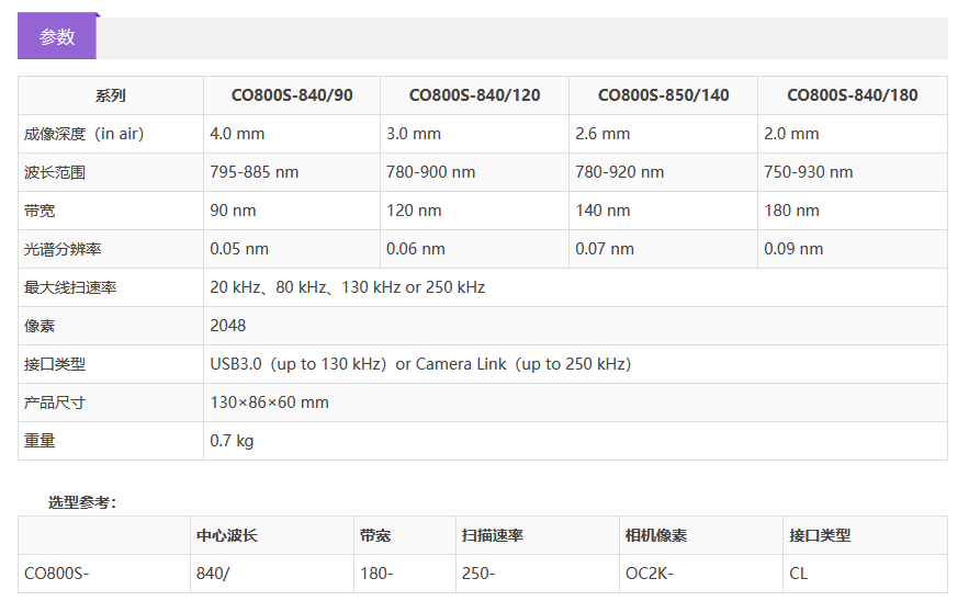 etsc东隆科技 OCT光谱仪Cobra CO800S-840-120