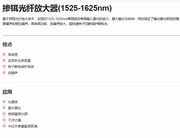 Precilasers频准激光 掺铒光纤放大器(1525-1625nm) 电话:0755-84670052 0755-83317701 手机/微信:13682357549 13246646513 QQ:672776553 564600083 1903656788 Email:672776553@qq.com 564600083@qq.com