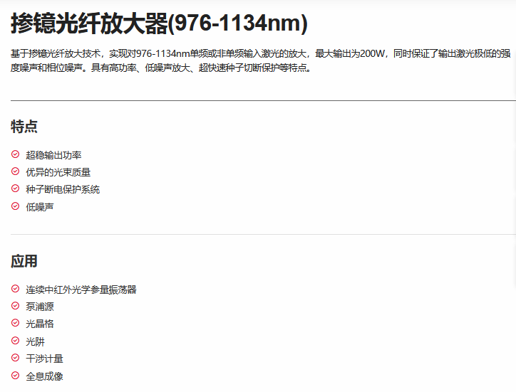 Precilasers频准激光 掺镱光纤放大器(976-1134nm)