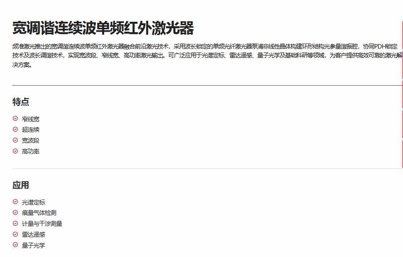 Precilasers频准激光 宽调谐连续波单频红外激光器