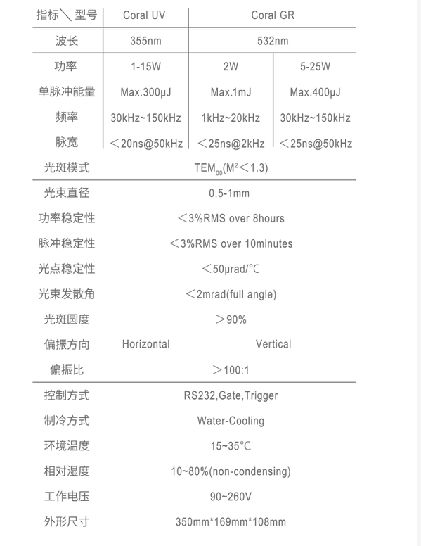 bellinlaser贝林激光器 Coral GR 紧凑型纳秒激光 手机/微信:13682357549 13246646513 QQ:672776553 564600083 1903656788 Email:672776553@qq.com 564600083@qq.com