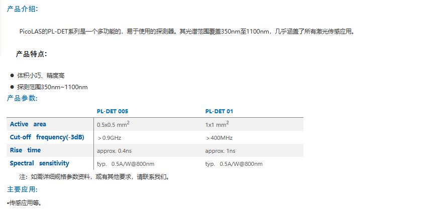 PicoLAS PL-DET 01 高速探测器 电话:0755-84670052 0755-83317701 手机/微信:13682357549 13246646513 QQ:672776553 564600083 1903656788 Email:672776553@qq.com 564600083@qq.com