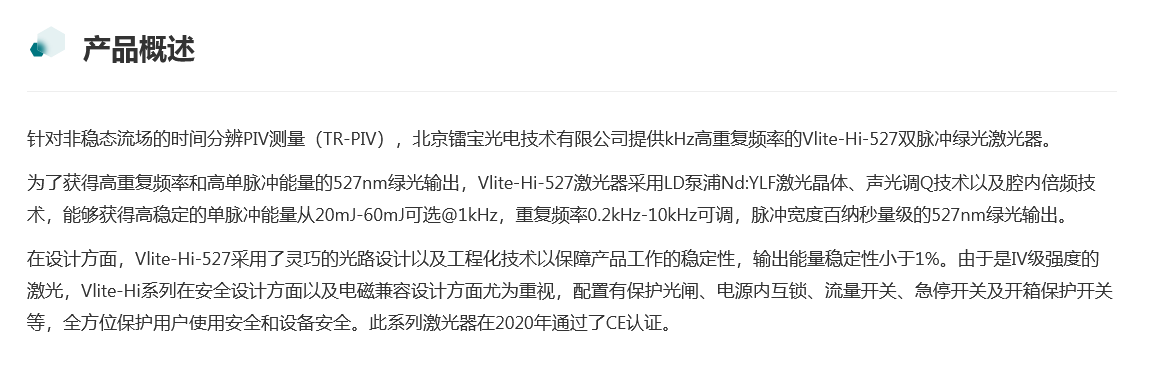 beamtech-laser镭宝 Vlite-Hi-527-70 双脉冲PIV激光器