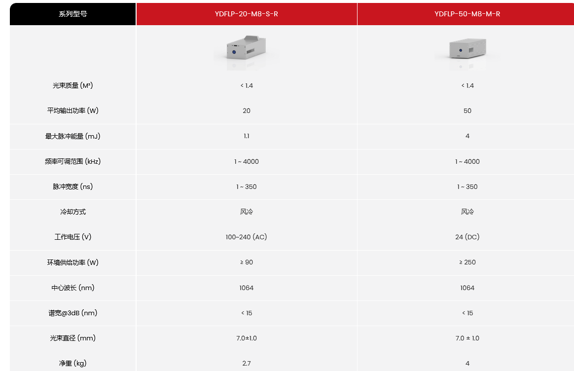 YDFLP-20-M8-S-R M8系列脉冲光纤激光器