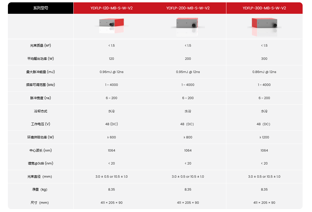YDFLP-300-M8-S-W-V2 M8系列脉冲光纤激光器