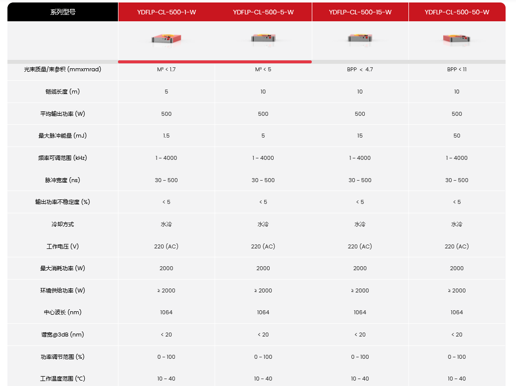 YDFLP-CL-500-50-W CL水冷红外脉冲光纤激光器