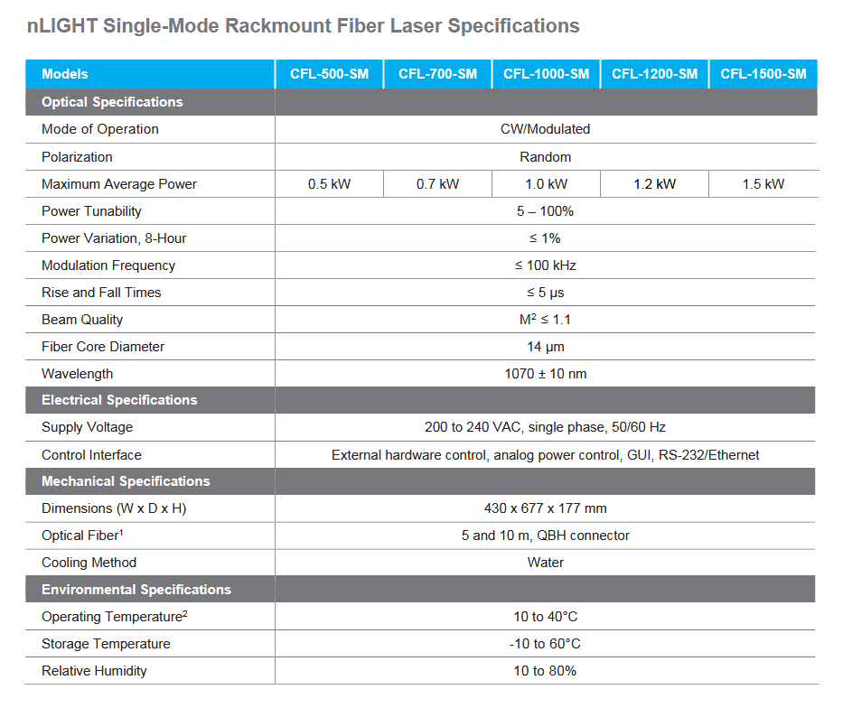 nLIGHT CFL-1200-SM 光纤激光器