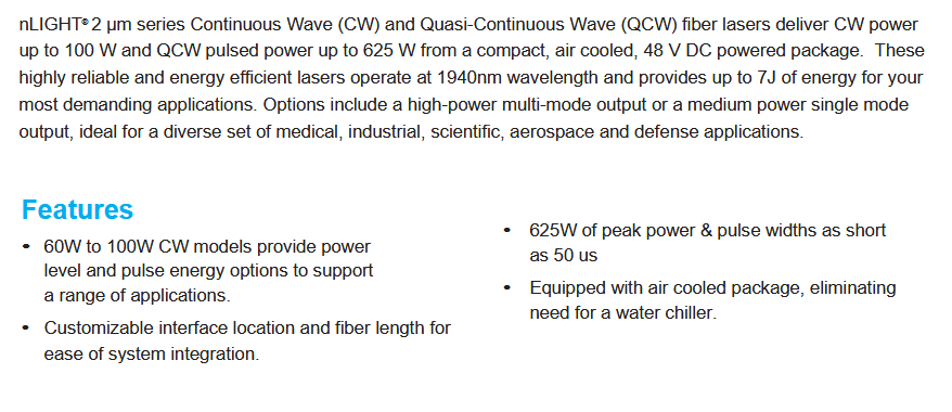nLIGHT TFL-100 光纤激光器 手机/微信:13682357549 13246646513 QQ:672776553 564600083 1903656788 Email:672776553@qq.com 564600083@qq.com
