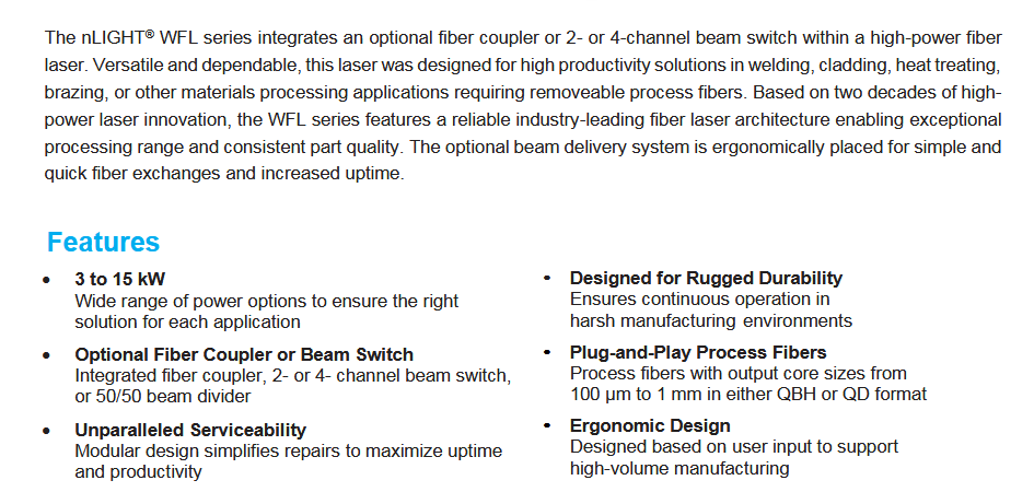 nLIGHT WFL-10000 光纤激光器 手机/微信:13682357549 13246646513 QQ:672776553 564600083 1903656788 Email:672776553@qq.com 564600083@qq.com