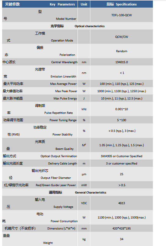 TDFL-100-QCW 连续激光器
