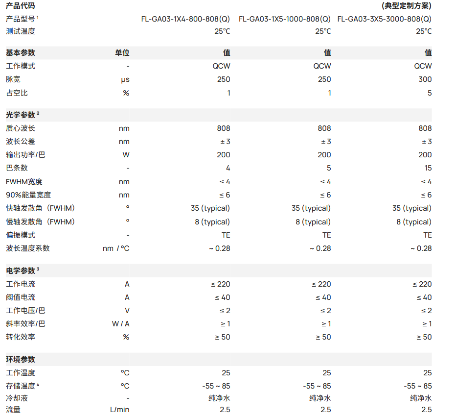 Focuslight炬光科技 FL-GA03-1X4-800-808(Q) 传导冷却叠阵激光器 手机/微信:13682357549 13246646513 QQ:672776553 564600083 1903656788 Email:672776553@qq.com 564600083@qq.com