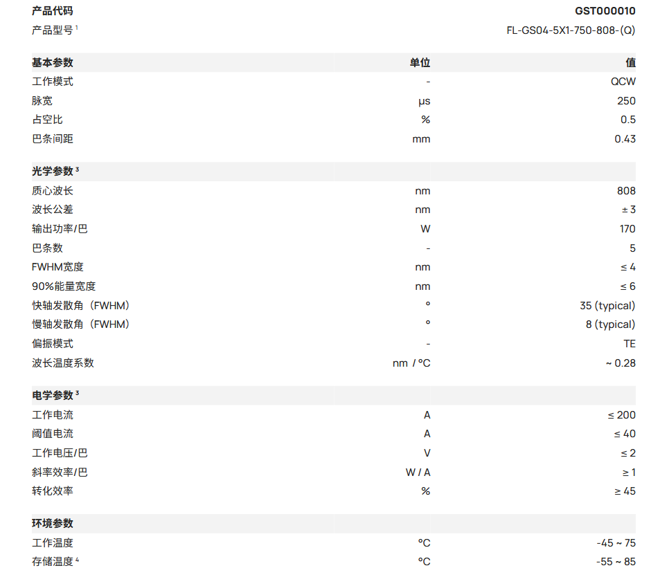 Focuslight炬光科技 FL-GS04-5X1-750-808-(Q) 传导冷却叠阵激光器