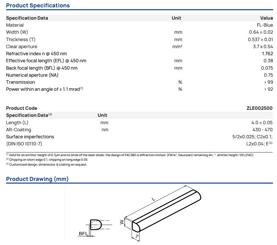 Blue FAC 380 (BFL=75µm) 快轴准直镜