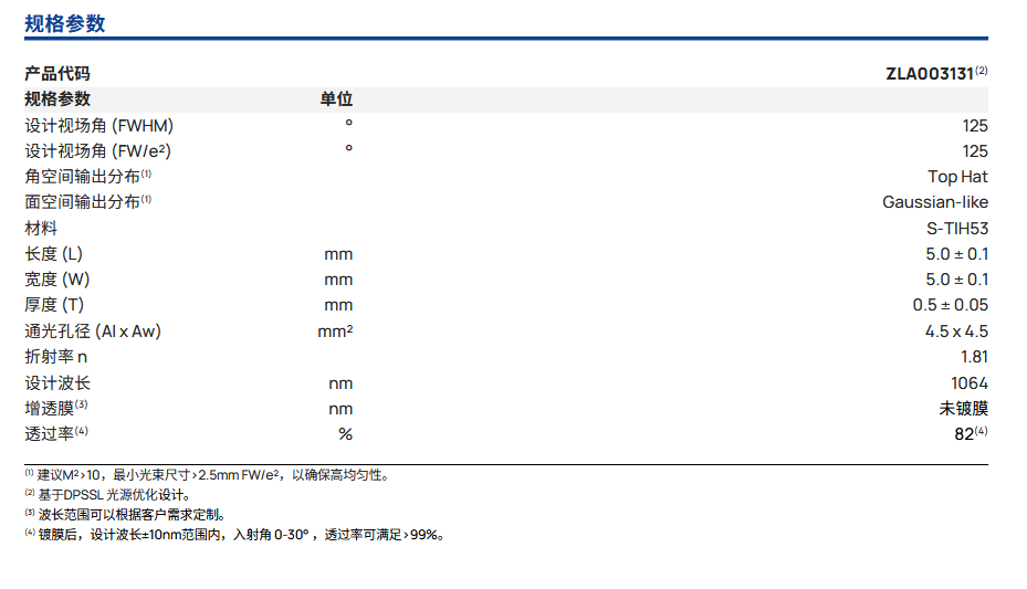 Focuslight炬光 125° Diffuser, S-TIH53 广角匀化扩散器
