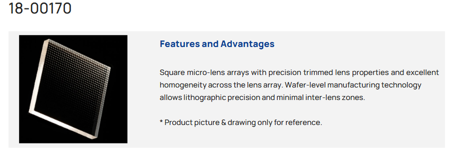 Focuslight炬光 18-00170 微透镜阵列 手机/微信:13682357549 13246646513 QQ:672776553 564600083 1903656788 Email:672776553@qq.com 564600083@qq.com