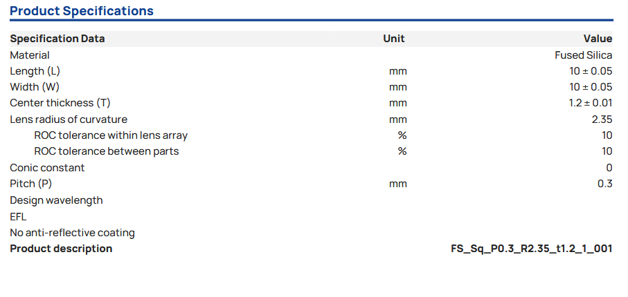 Focuslight炬光 18-00211 微透镜阵列