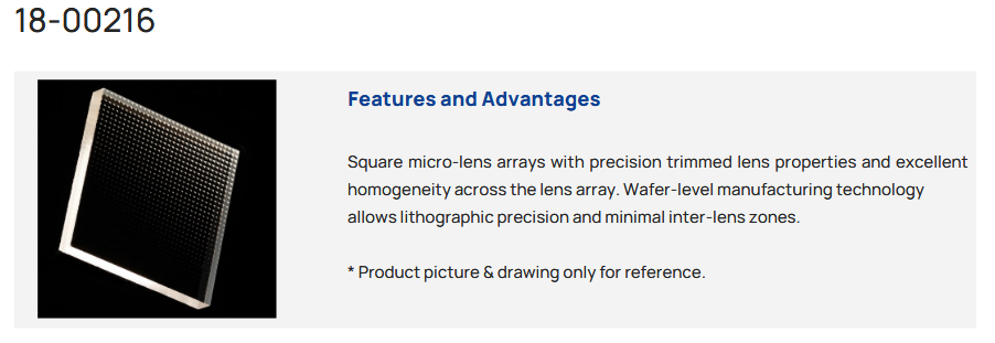 Focuslight炬光 18-00216 微透镜阵列 手机/微信:13682357549 13246646513 QQ:672776553 564600083 1903656788 Email:672776553@qq.com 564600083@qq.com