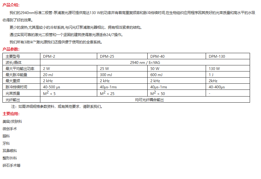 Pantec DPM-40 2940nm激光器 手机/微信:13682357549 13246646513 QQ:672776553 564600083 1903656788 Email:672776553@qq.com 564600083@qq.com