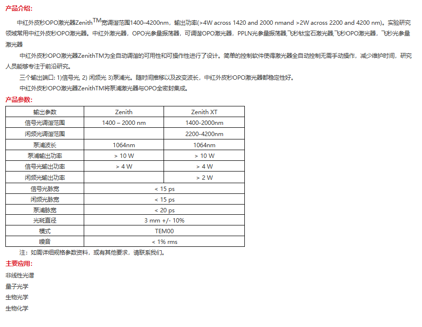 RADIANTIS Zenith 皮秒可调谐激光器 手机/微信:13682357549 13246646513 QQ:672776553 564600083 1903656788 Email:672776553@qq.com 564600083@qq.com