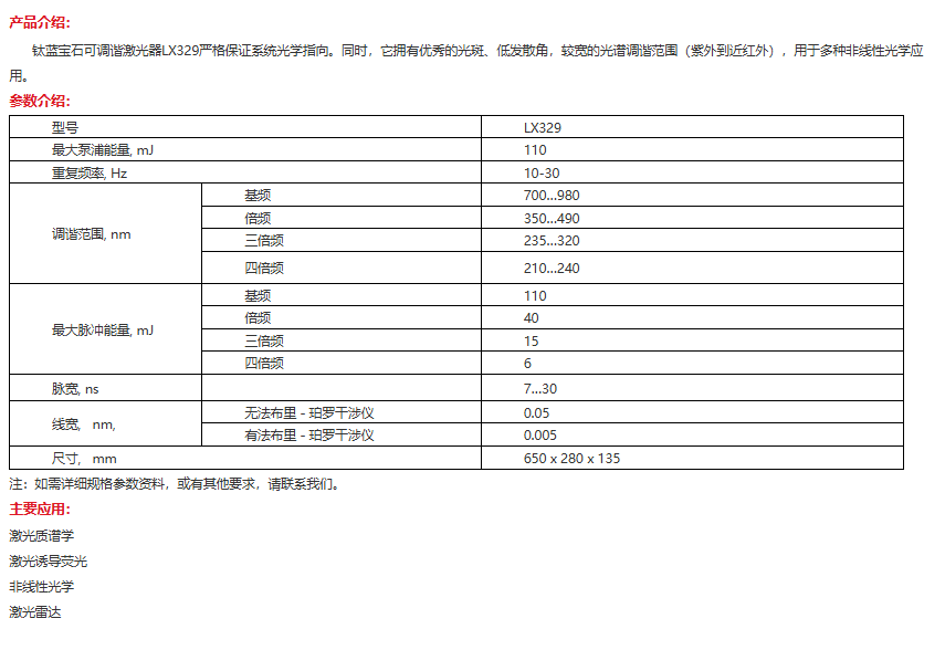 Solar LX329 钛蓝宝石可调谐激光器 手机/微信:13682357549 13246646513 QQ:672776553 564600083 1903656788 Email:672776553@qq.com 564600083@qq.com