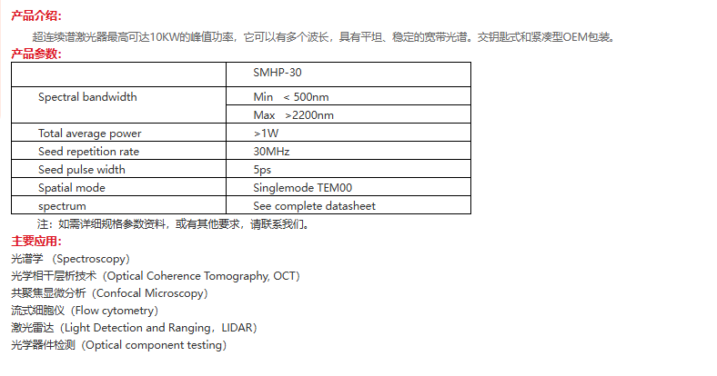 LEUKOS SMHP-30 高功率超连续谱激光器 手机/微信:13682357549 13246646513 QQ:672776553 564600083 1903656788 Email:672776553@qq.com 564600083@qq.com