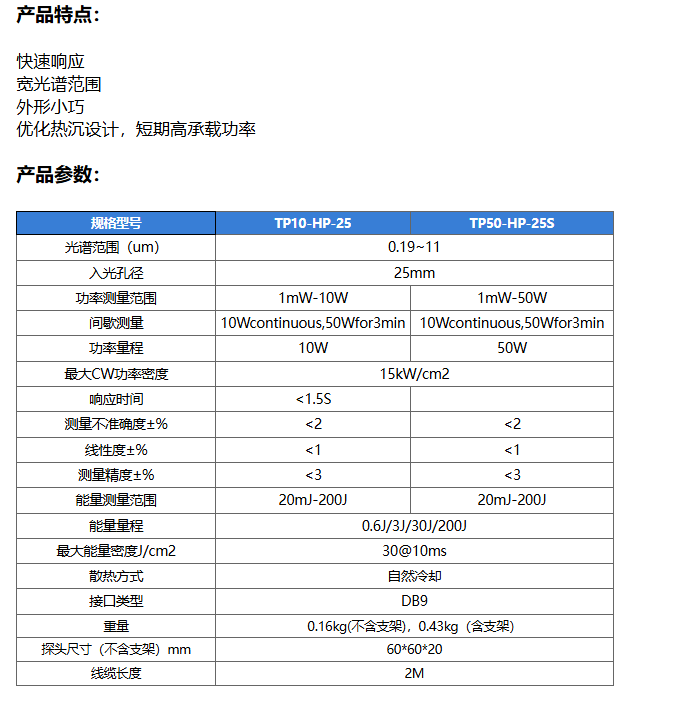 安特激光 TP50-HP-25S 功率计探头 手机/微信:13682357549 13246646513 QQ:672776553 564600083 1903656788 Email:672776553@qq.com 564600083@qq.com