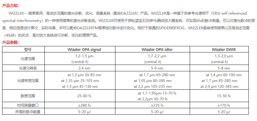 Fastlite Wizzler OPA signal 激光诊断、优化、测量系统
