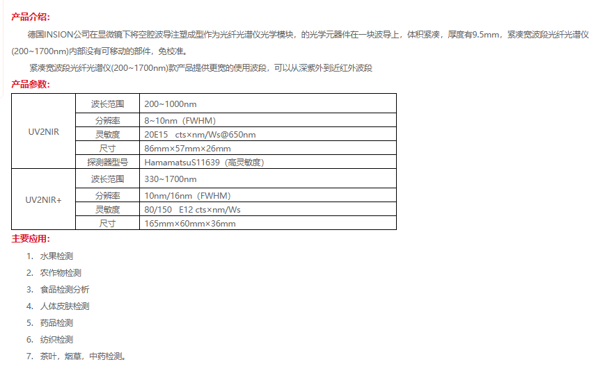 INSION 紧凑宽波段光纤光谱仪 手机/微信:13682357549 13246646513 QQ:672776553 564600083 1903656788 Email:672776553@qq.com 564600083@qq.com