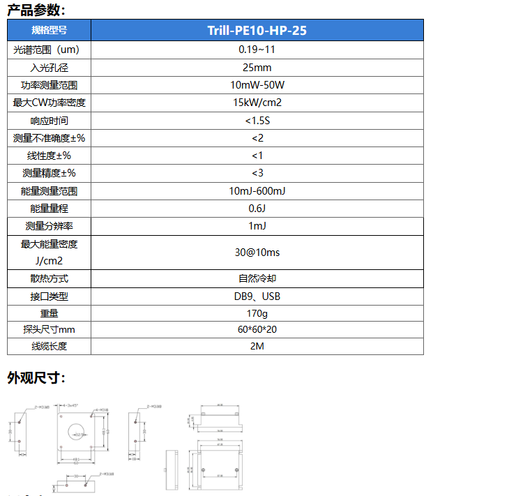 安特激光 Trill-PE10-HP-25 TRILL系列激光能量计 手机/微信:13682357549 13246646513 QQ:672776553 564600083 1903656788 Email:672776553@qq.com 564600083@qq.com