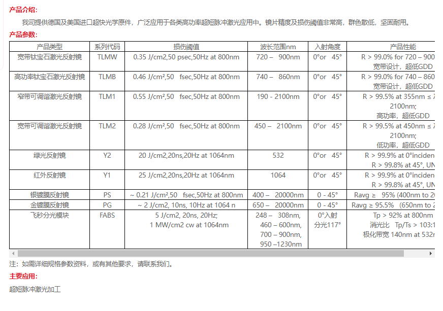 Layertec 450–2100nm 宽带可调谐激光反射镜 手机/微信:13682357549 13246646513 QQ:672776553 564600083 1903656788 Email:672776553@qq.com 564600083@qq.com