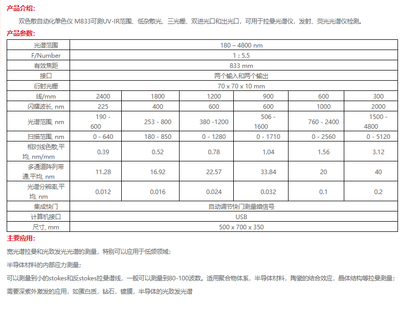 Solar M833 双色散自动化单色仪 手机/微信:13682357549 13246646513 QQ:672776553 564600083 1903656788 Email:672776553@qq.com 564600083@qq.com