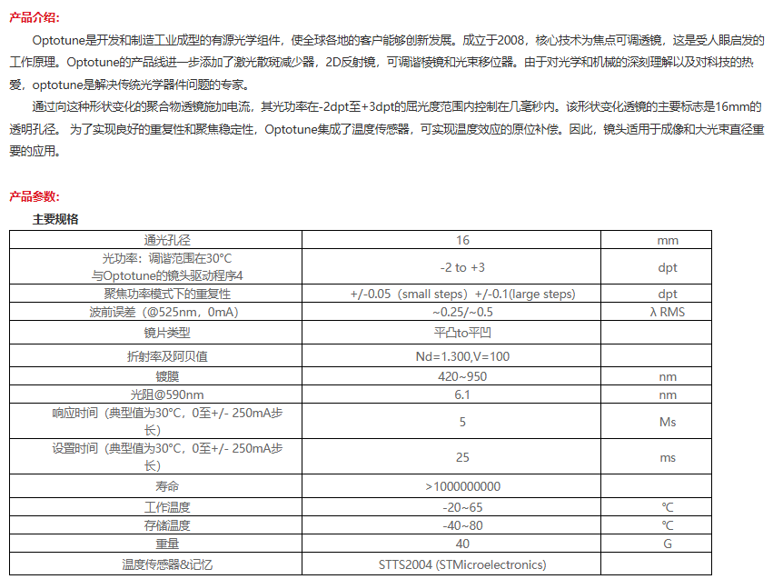 瑞士optotune 通光孔径16mm液态镜头 手机/微信:13682357549 13246646513 QQ:672776553 564600083 1903656788 Email:672776553@qq.com 564600083@qq.com