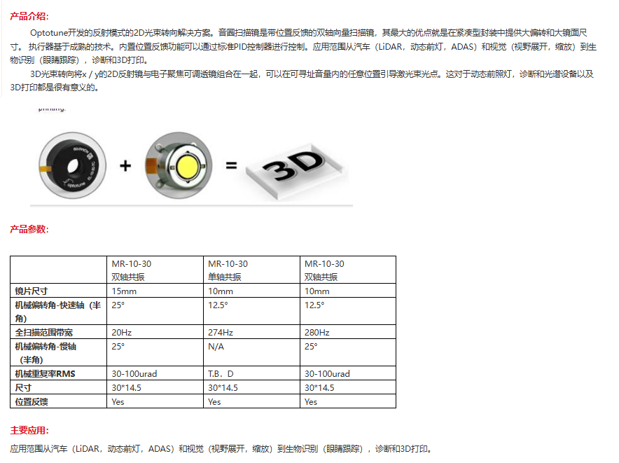 瑞士optotune 10mm MR-10-30双轴共振 音圈扫描镜 手机/微信:13682357549 13246646513 QQ:672776553 564600083 1903656788 Email:672776553@qq.com 564600083@qq.com