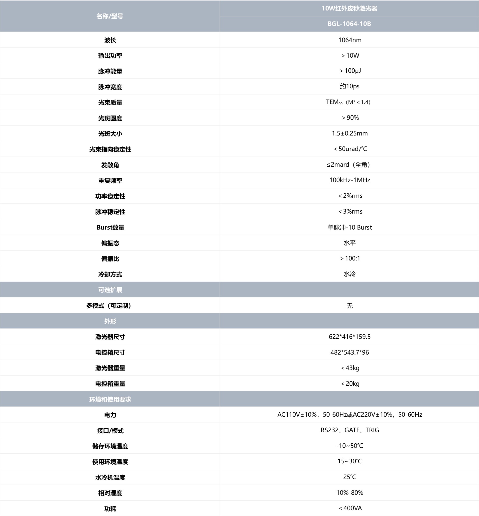 BWT凯普林 BGL-1064-10B 皮秒激光器