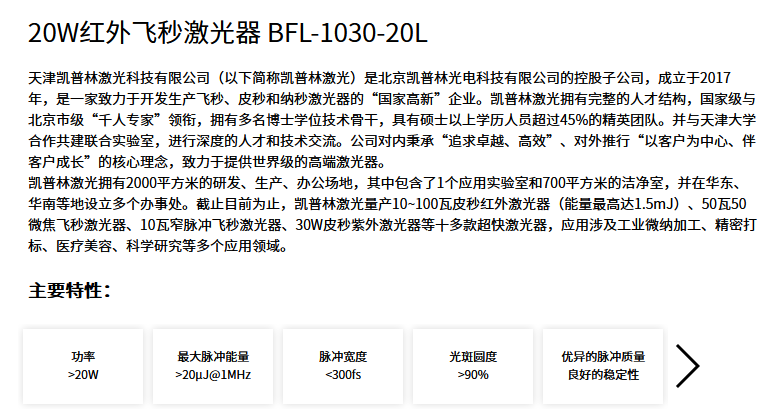 BWT凯普林 BFL-1030-20L 飞秒激光器